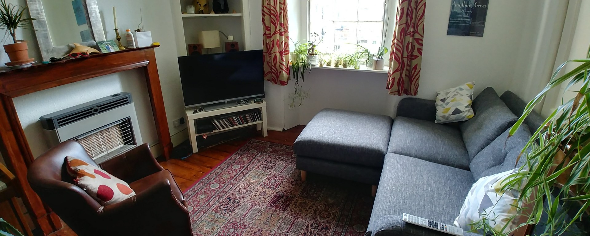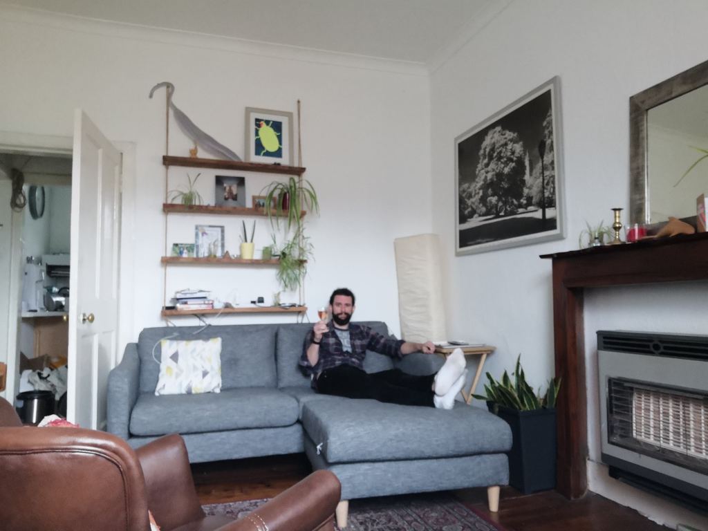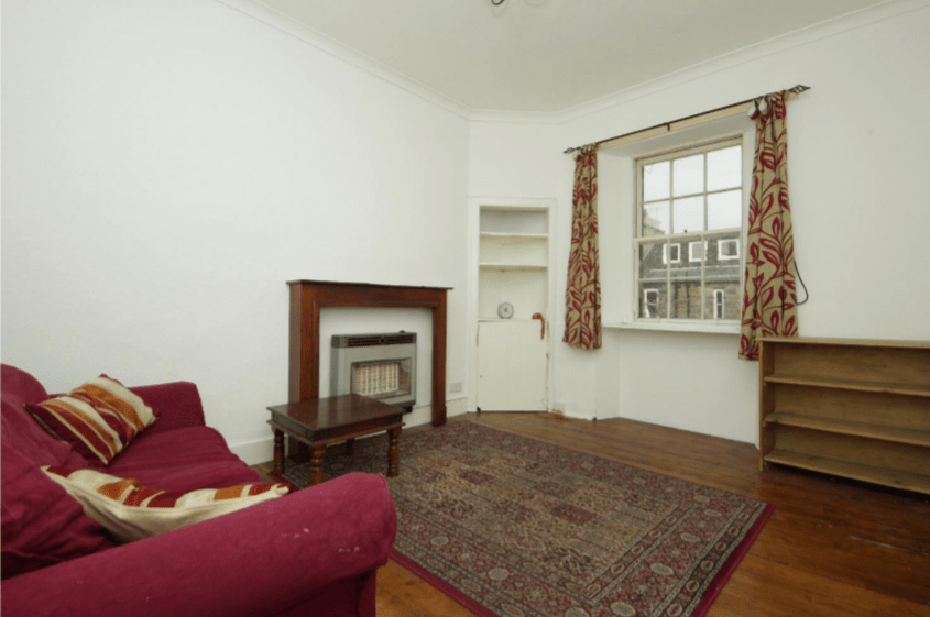 The previous owners left that couch. It might not have been the prettiest, but it was surprisingly comfy, actually – big and squishy, with a handy bed inside it (which obviously I didn’t find for about a year, because duh). I turned the rug through 90 degrees pretty quickly. If you ever browse ESPC or other Edinburgh-ish property sites you might recognise it – it’s an IKEA piece. My sister-in-law giggled the first time she visited, because she had also inherited the same one!