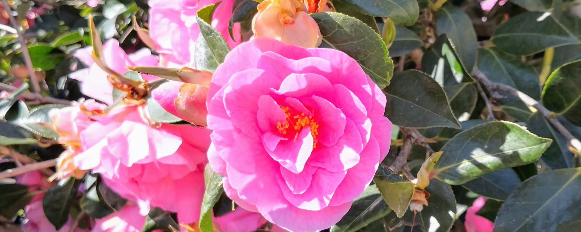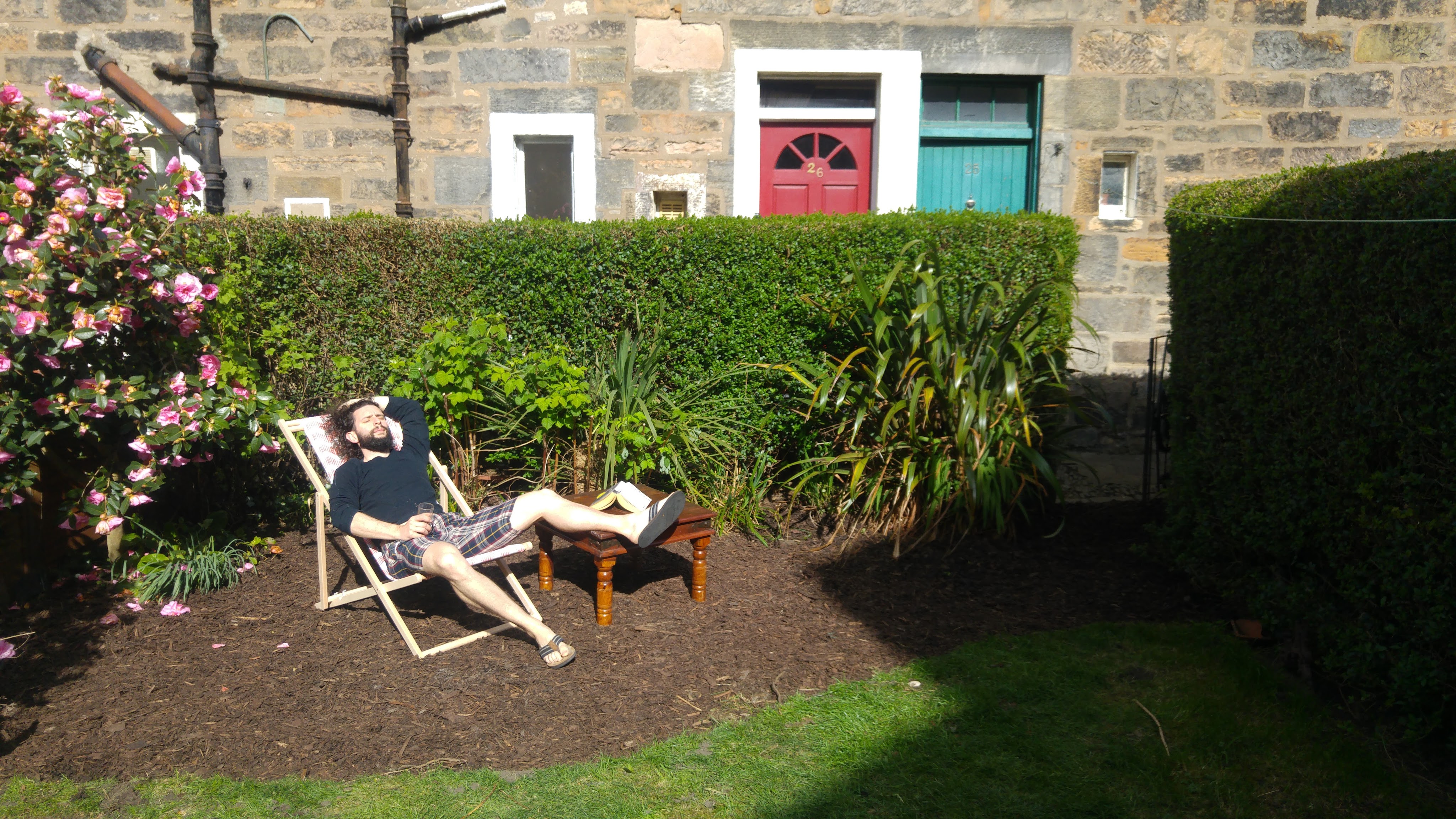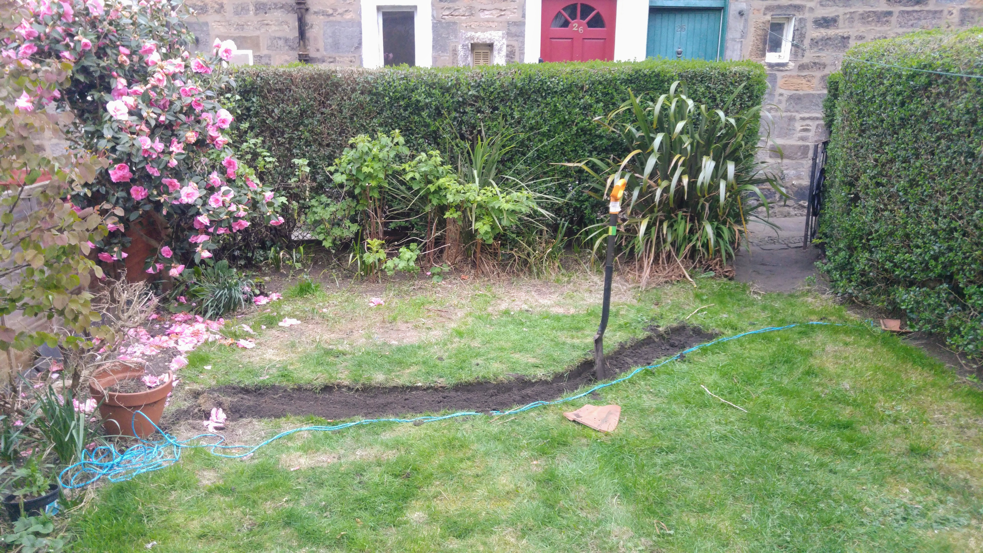 The other thing you might notice there is the lovely pink thing – my camellia. It’s glorious, isn’t it? My neighbours and I all love it, because its flowering is a sure sign that spring is coming. Thankfully whoever planted it set it up right, so I’ve had to do very little beyond prune it each year – my kind of gardening.